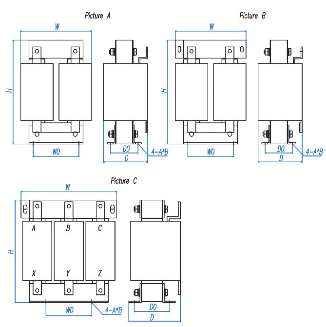 以上APF连接电抗器,EISA-三相一体式铝制电抗器,UISA-单相铝制电抗器,UISC-单相铜制电抗器。磁芯材料若选择磁粉芯须订制