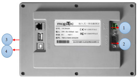 用户界面背部常用端口有DC电源端口,以及RS232/RS485通讯端口如下图5-2所示。