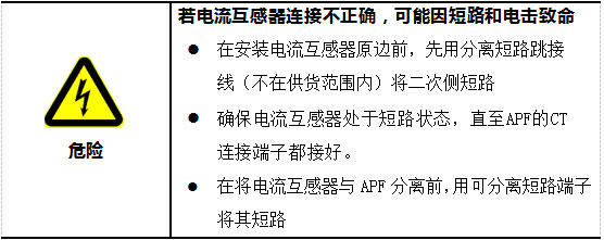 n 三个外部电流互感器必须正确连接到APF上。