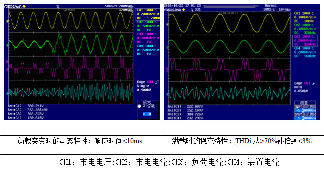 1. 可同时滤除2~50次以下的谐波电流,满载时使电源侧电流畸变率THDI<3%,半载时THDI<4%;