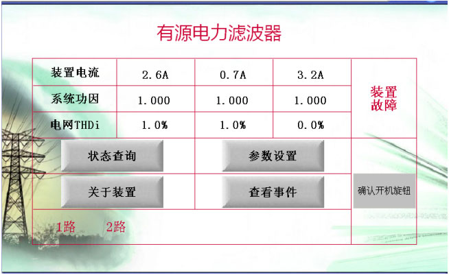 APF装置显示系统电网波形数据,监测各模块的运行情况。事件记录可以反映系统故障信息。