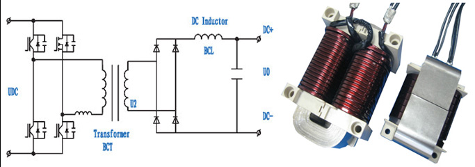 应用电路:电动汽车直流充电机充电模块FB-ZVS-PWM移相全桥软开关DC-DC高频直流滤波。