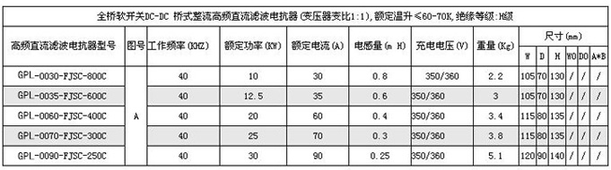 B-ZVS-PWM移相全桥软开关DC-DC直流滤波电抗器技术参数: