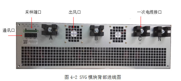 SVG由内部风扇提供强制风冷,冷风通过SVG机柜前面的风栅进入ZLDL-SVG内部,并通过SVG后部的风栅排出热风。请勿阻塞通风孔。