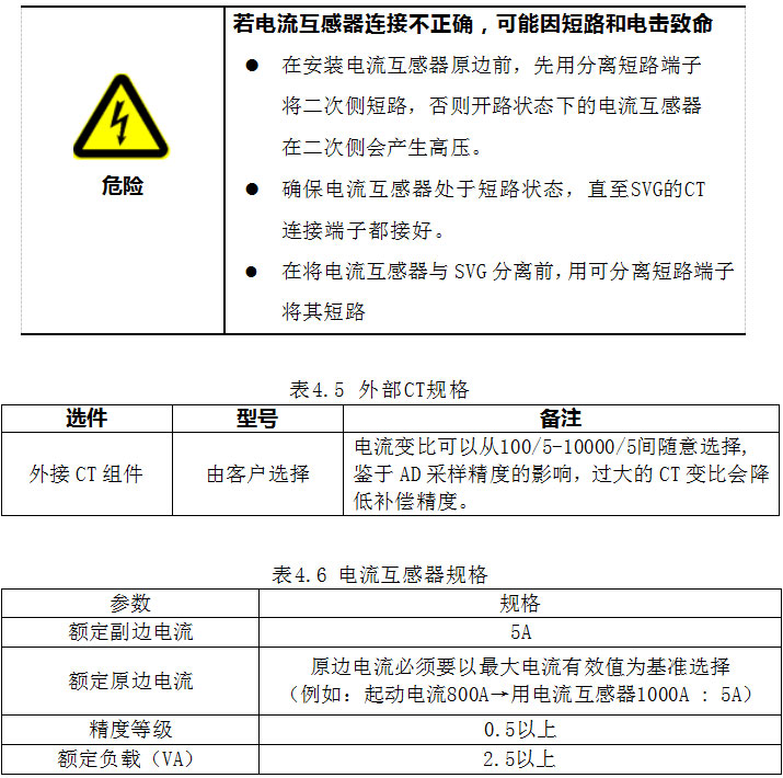 【注】:SVG装置的电气部分的安装必须由经过培训的合格工程师依据“电工法则”进行,严禁其他人员违规进行安装,本手册只介绍安装的基本内容,具体安装细节请参考电工规范。