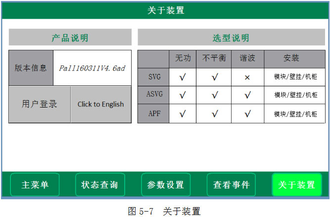 ZLDL-SVG通过集成在一块面板上的显示屏和按键进行操作。其中,5.1-5.6节为集中显示大触摸屏的操作,5.7-5.8为??樾∑恋牟僮?/p>