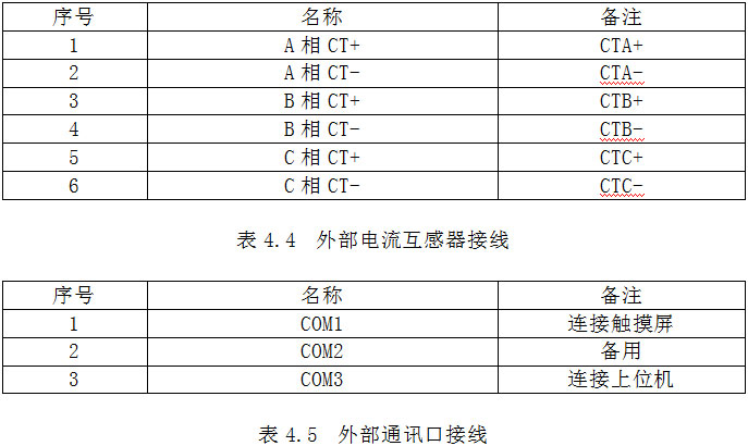 其中,CAP+、CAP-为控制电容器端口,EXO+、EXO-为急停按钮端口,机架式设备在外部前面板标配一个急???,此端口接外部急??氐某1沾サ?。如果不用的话可以将其短接,其余端口为外接CT口。如下: