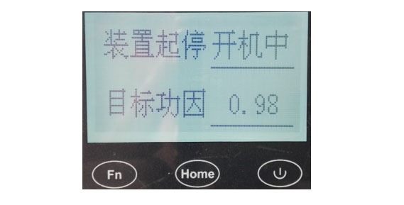 装置操作:“点击开机”或者“点击关机”。按照相应提示点击这个按钮即可操作设备开关机,同时此处变换动作状态,但是开机是否成功的结果,显示在“运行”或“待机”中。