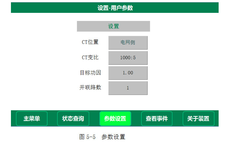 装置起停、目标功因、CT变比、CT位置、??榈刂贰?/p>