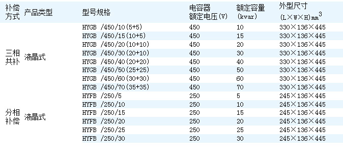 HY系列智能式低压电力电容器是0.4KV低压电网高效节能﹑降低线损﹑提高功率因数和电能质量的无功补偿设备。它由智能测控单元,晶闸管复合开关电路,线路保护单元,两台(△型)或一台(Y型)低压电力电容器构成。替代常规由智能控制器﹑熔丝﹑复合开关或机械式接触器﹑热继电器﹑低压电力电容器﹑指示灯等散件在柜内和柜面由导线连接而组成的自动无功补偿装置.改变了传统无功补偿装置体积庞大和笨重的结构模式,从而使低压无功补偿设备具有补偿效果更好,体积更小,功耗更低,价格更廉,节约成本更多,使用更加灵活,维护更加方便,使用寿命更长,可靠性更高的特点,适应了现代电网对无功补偿的更高要求。